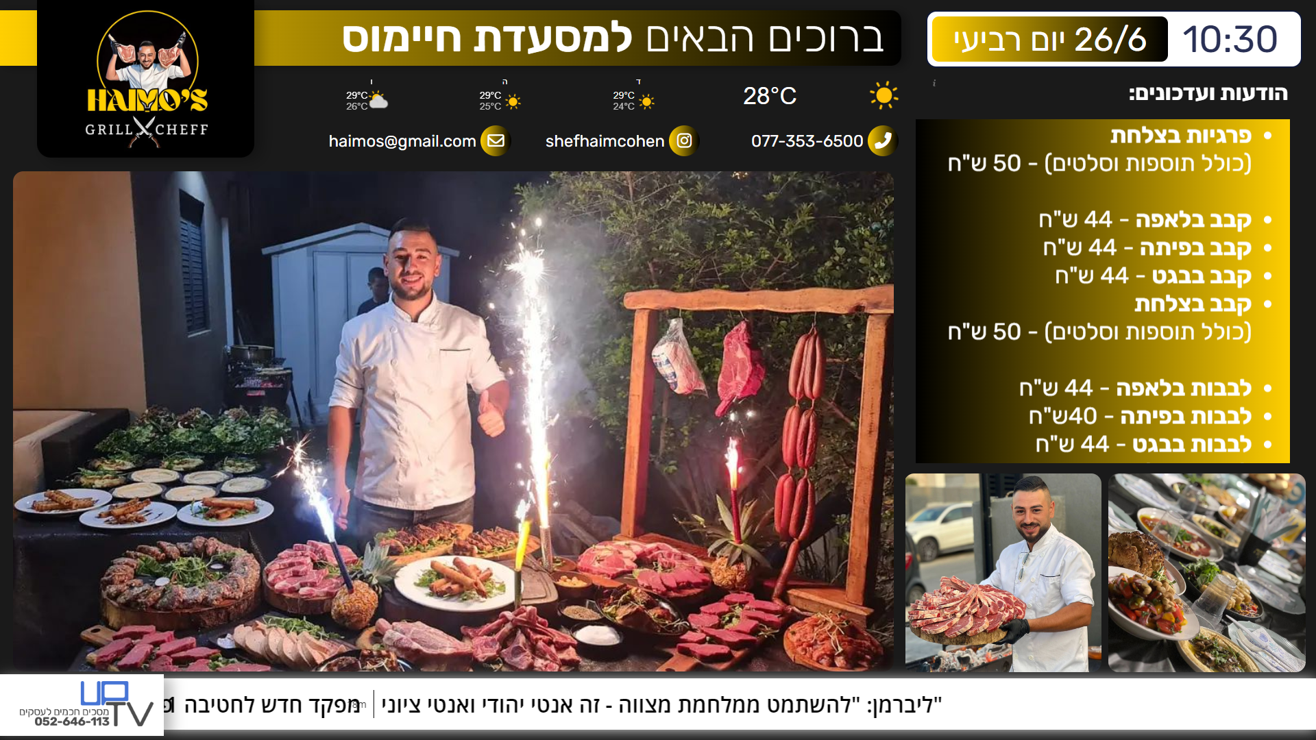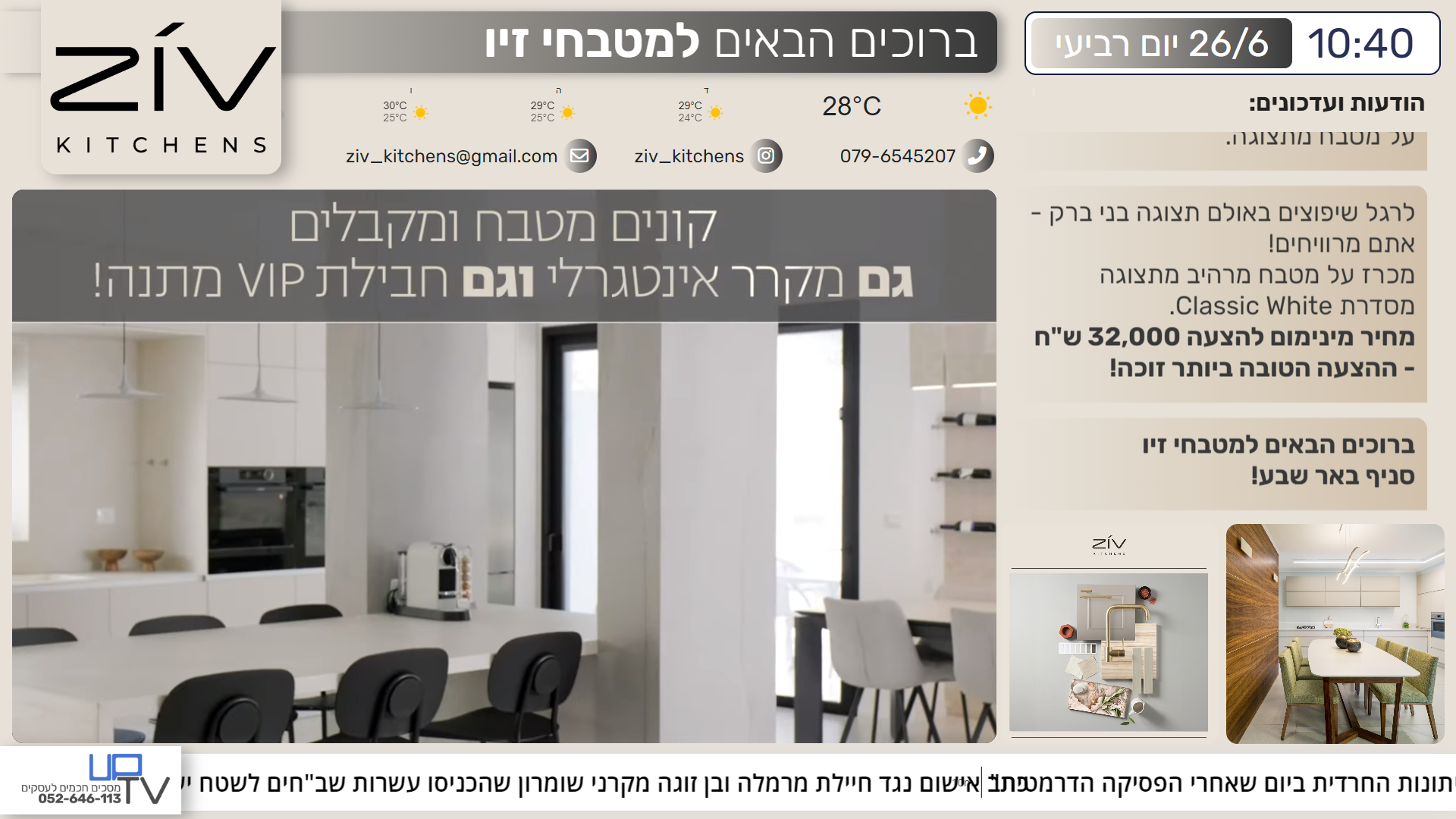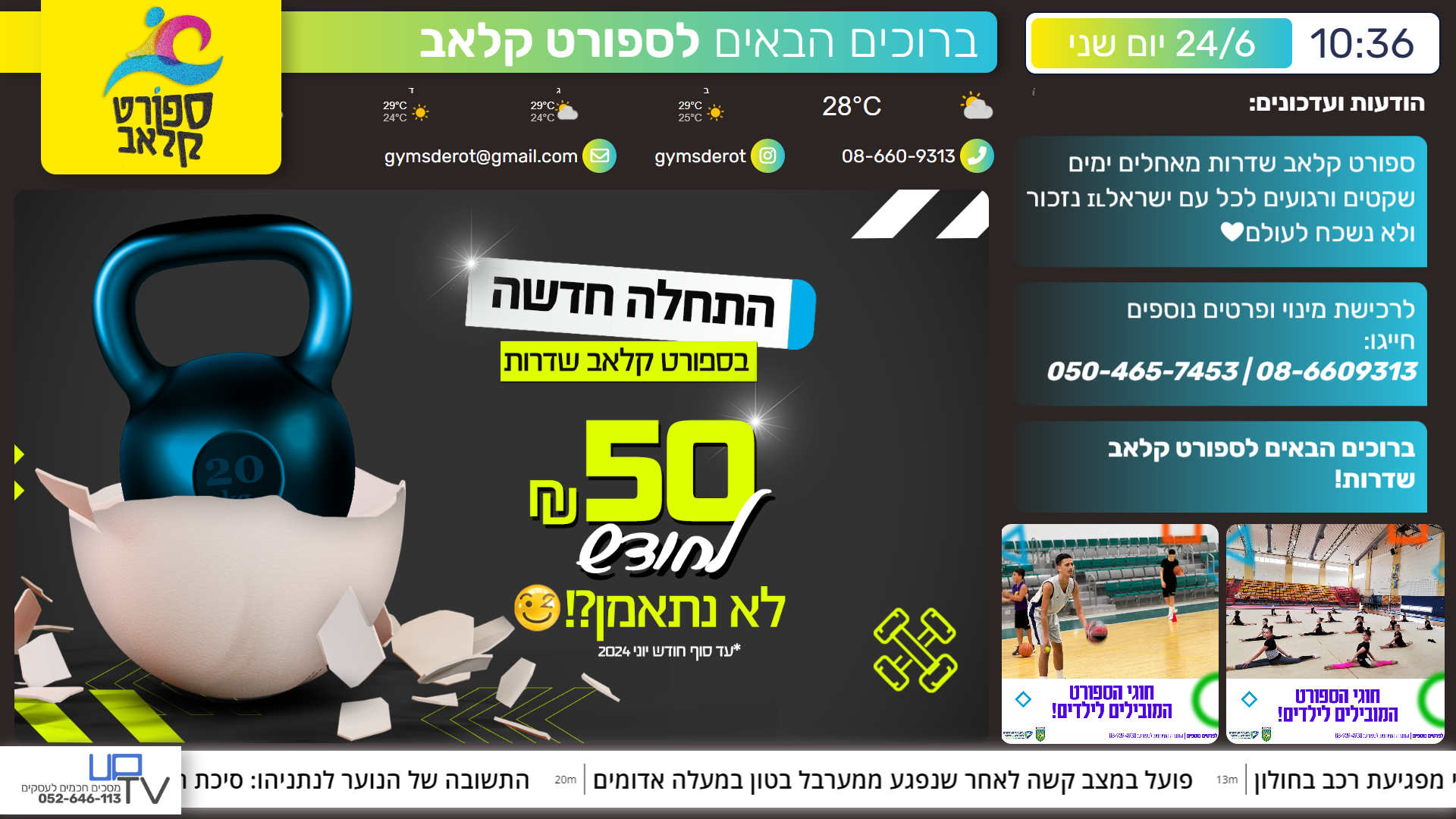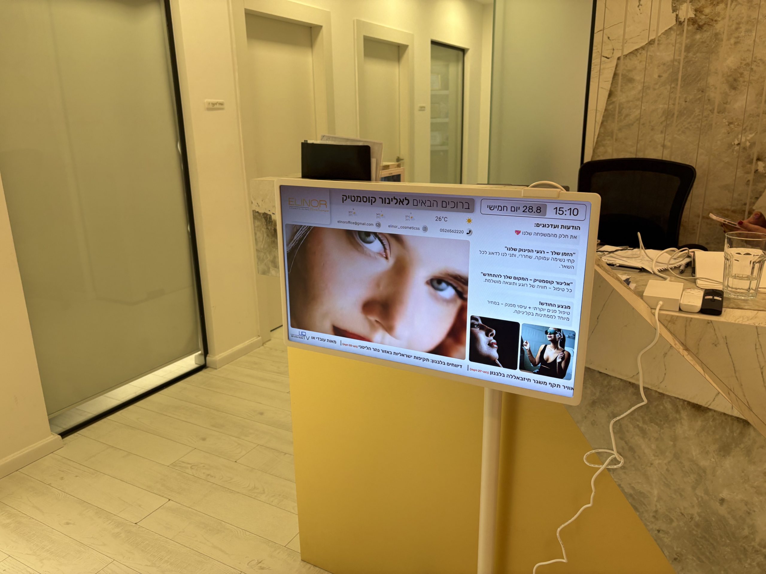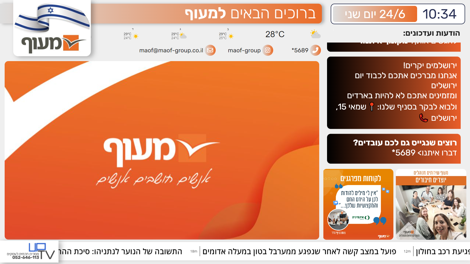 התכנים והממשק הגרפי של מסכי התצוגה מעוצבים בהתאמה מלאה לזהות המותגית והצרכים הייחודיים של העסק שלכם.