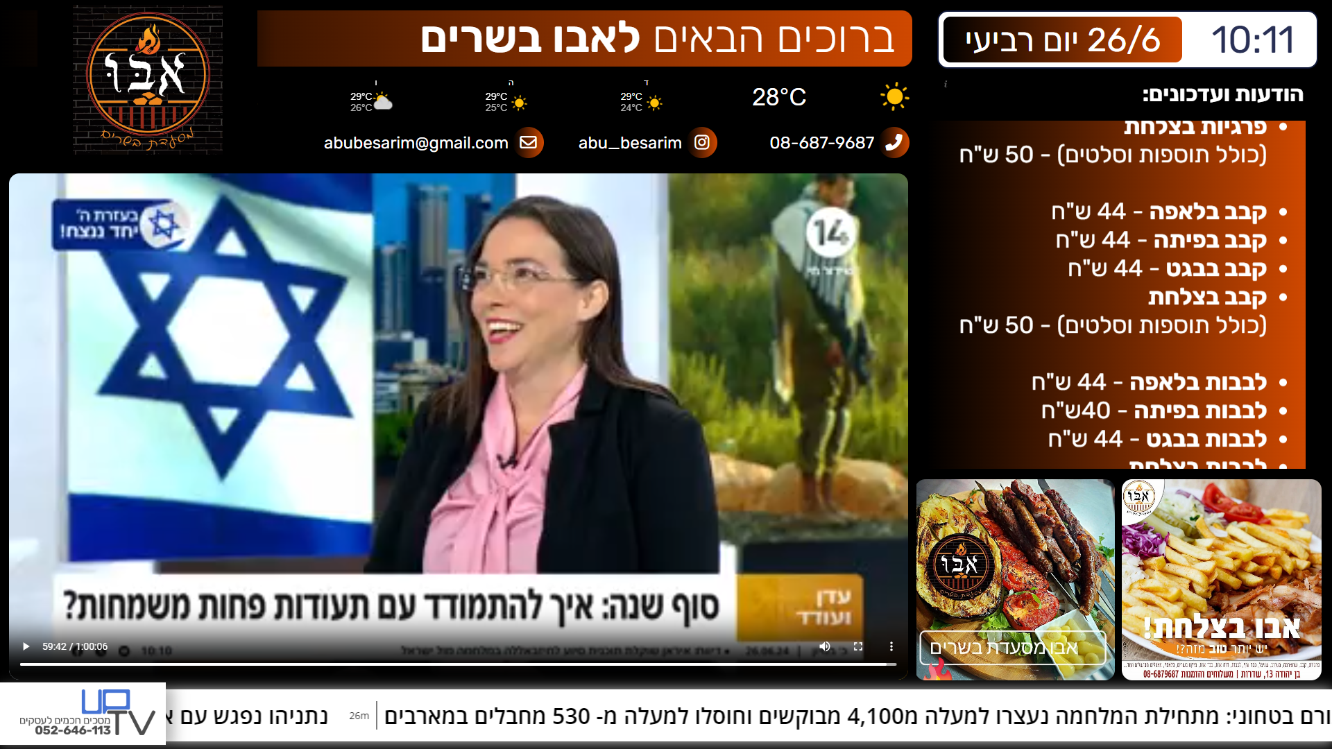 מערכותינו מאפשרות שליטה מרכזית וקלה בהצגת מגוון תכנים רלוונטיים כמו הודעות ועדכונים, תפריטים, סרטוני תדמית, תמונות ועוד.