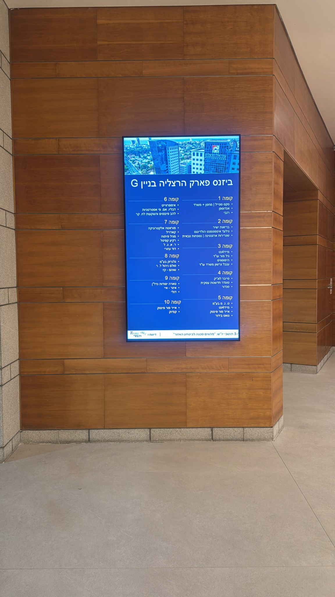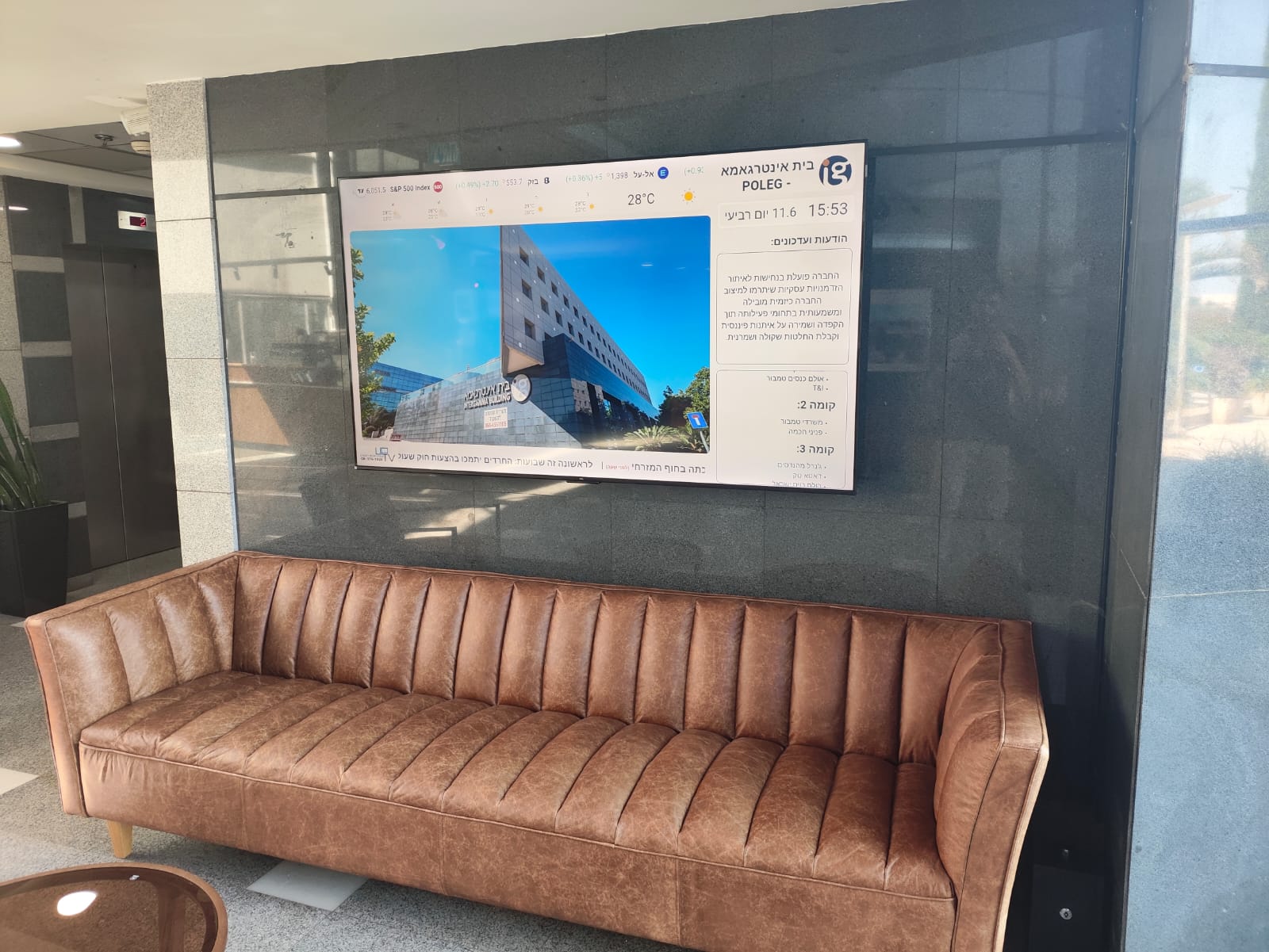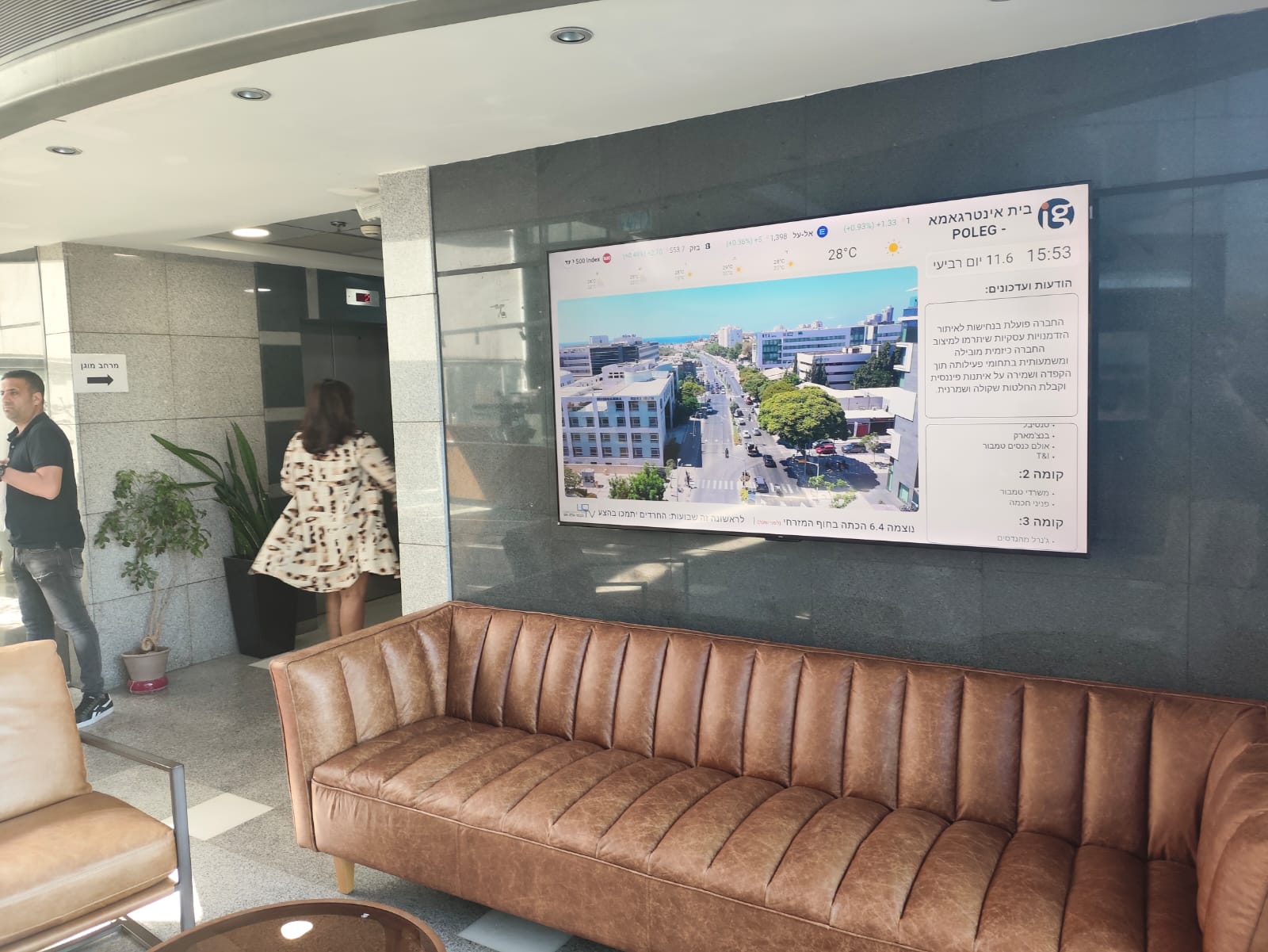 גלו כיצד להפוך את הלובי שלכם למרחב מודרני ומרשים. המסכים החכמים שלנו מעניקים לכל כניסה מראה חדשני, אלגנטי וטכנולוגי.