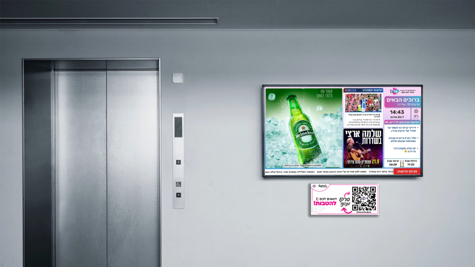 אז איך זה עובד? הקוד ה QR שלנו מפורסם בכל בניין תחת כל מסך ובתוך כל מעלית.