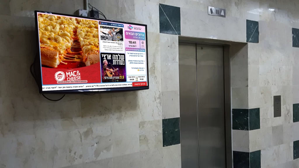 אל תתפשרו על פחות והישארו צעד אחד קדימה מהמתחרים בשוק! בחרו ב-UPTV והפנו את תשומת הלב שלכם לפרסום היעיל והמרהיב בלובי הבניינים במגוון ערים לבחירה.